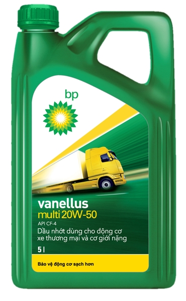 BP Vanellus Multi 20W-50 CF-4 là sản phẩm đa dụng dùng cho động cơ diesel hạng nặng. Sản phẩm này phù hợp với các động cơ diesel hút khí tự nhiên hoặc có trang bị turbo tăng áp sử dụng dải rộng nhiên liệu diesel có chất lượng khác nhau.