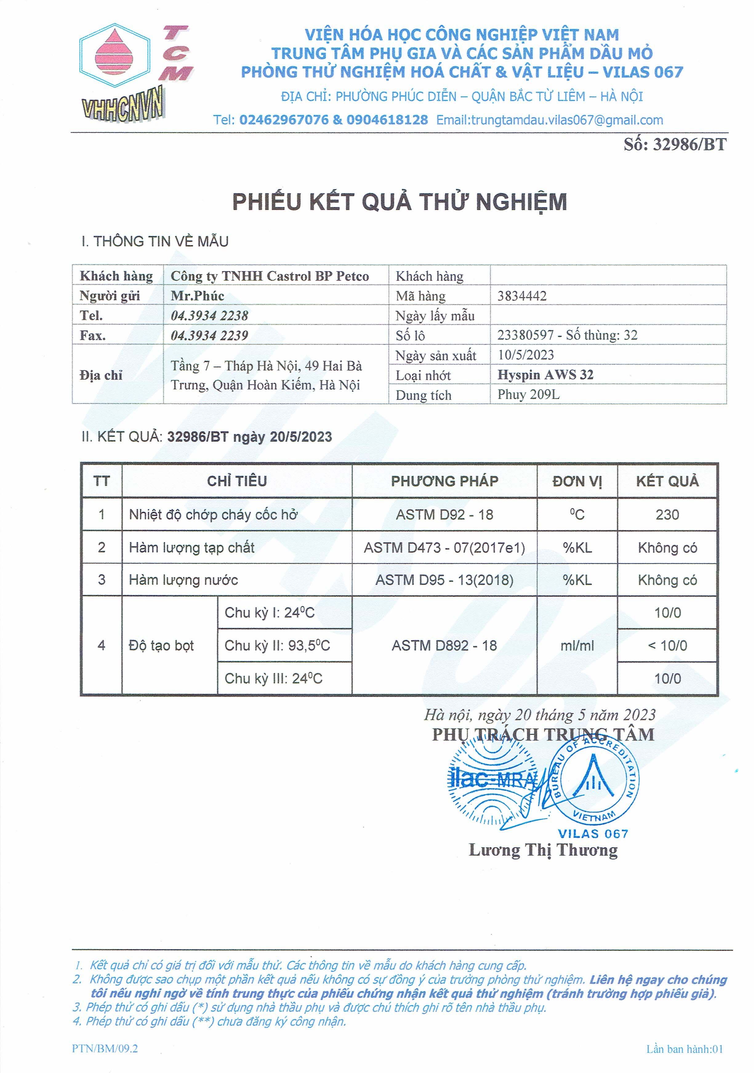 - Tính tách nước tốt và bền thủy phân được kiểm chứng trong các thử nghiệm tiêu chuẩn công nghiệp. Điều này giúp tăng cường độ tin cậy của thiết bị, kéo dài tuổi thọ của dầu và giảm thời gian dừng máy.
